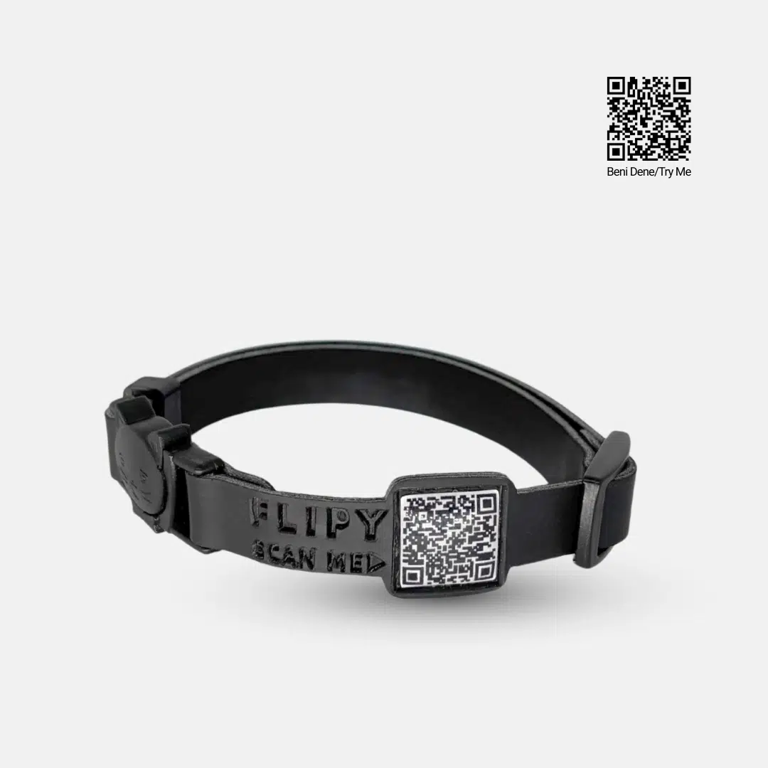 QR Kod okunmazsa ne olur, Çizilir mi?Hayır. Flipy tasmalarda kullanılan QR kod, çizilmeye karşı dirençli şeffaf kaplama ile korunur. Günlük kullanımda oluşabilecek sürtünme ve çizikler QR kodun okunmasını etkilemez. Yıllar boyunca ilk günkü netliğini korur.