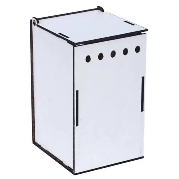 Küçük kuşlar için, kafes teline asılmaya uygun kancaları ve tüneği bulunan, ahşap, kuş yuvasıdır.