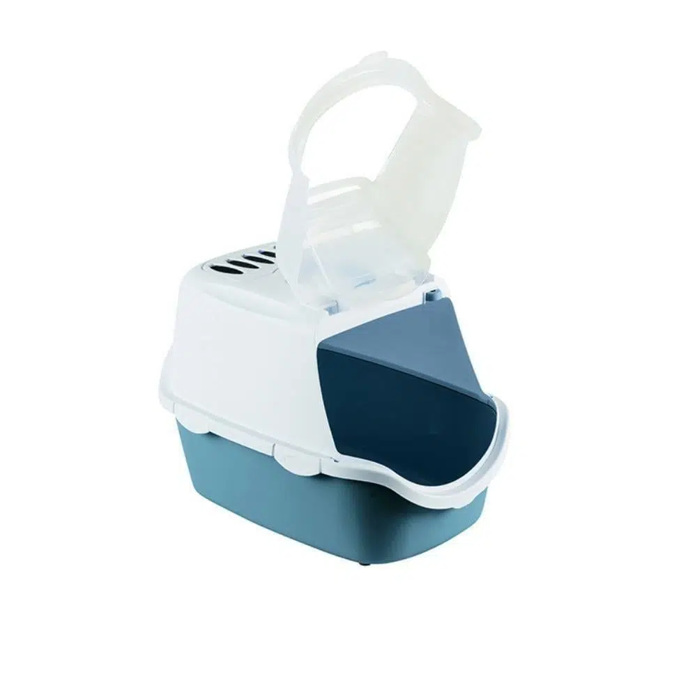 Stefanplast Cathy Easy Clean Kapalı Kedi Tuvaleti Beyaz – Mavi 56x40x40 cm
